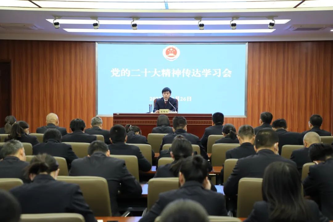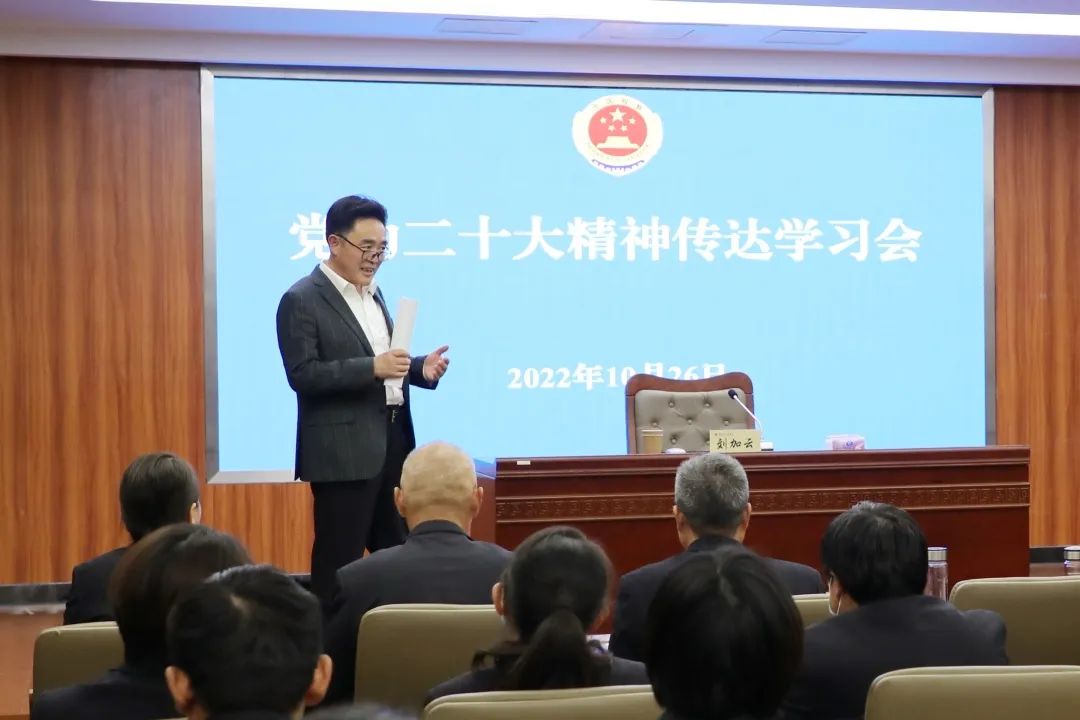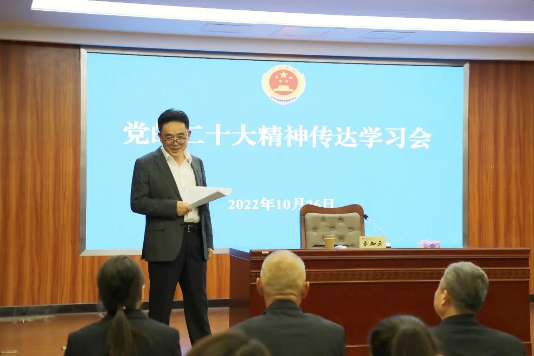 刘加云围绕学习党的二十大精神的必要性、重要性,党的二十大精神学习的重点内容以及下一步贯彻落实的举措和方向,与全院干警进行讨论。