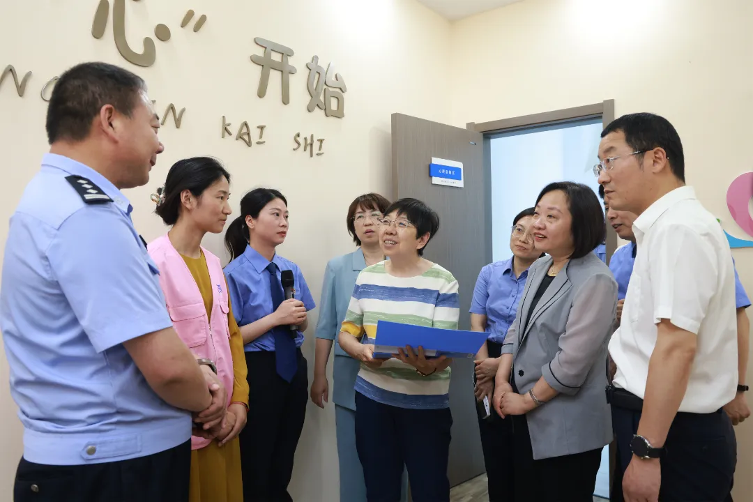 缐杰厅长一行参观了宿迁市未成年人综合司法保护中心,听取了案件办理区、心理干预中心等功能区运行情况介绍,详细了解案件办理、涉未成年人犯罪预防与治理、罪错未成年人分级干预数字监督模型、社工工作开展等情况,对通过宿迁市未成年人综合司法保护中心开展罪错未成年人分级干预工作情况予以高度赞赏。