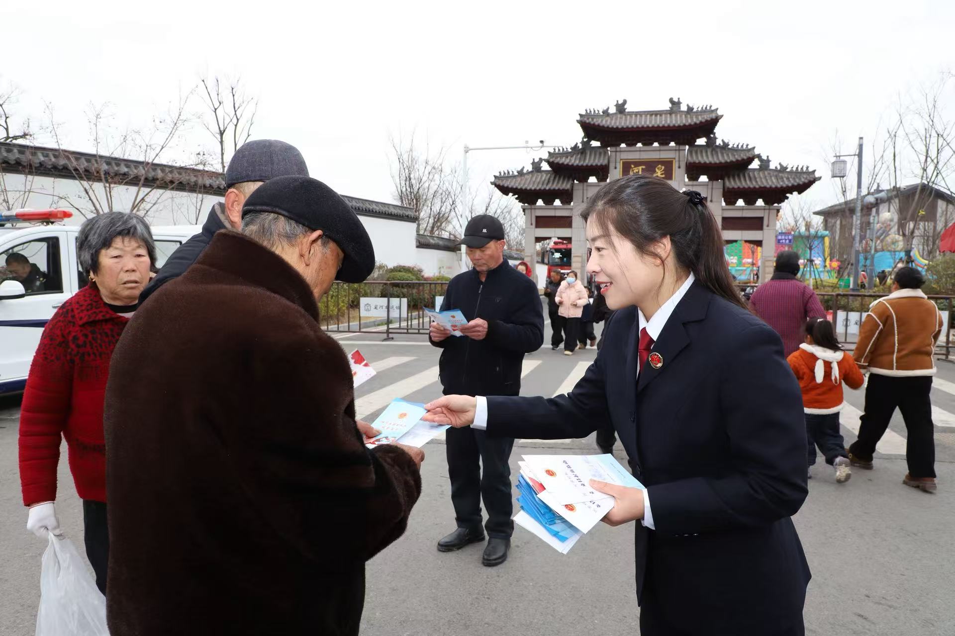 近日,宿迁市宿豫区检察院干警走进皂河庙会现场,开展法治宣传,向群众普及法律知识,提升群众法治意识。